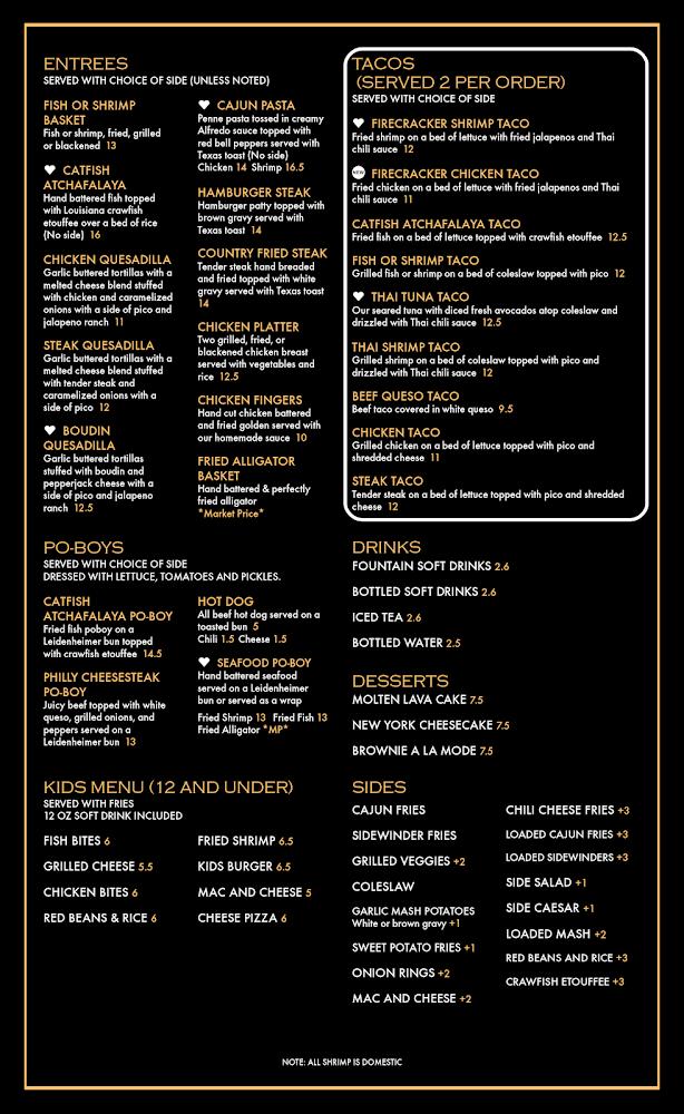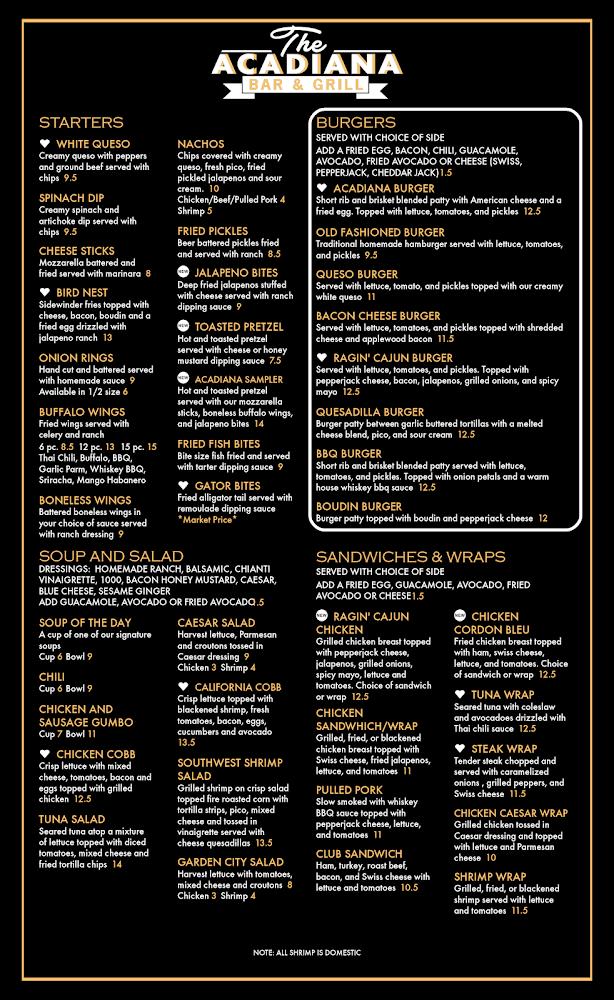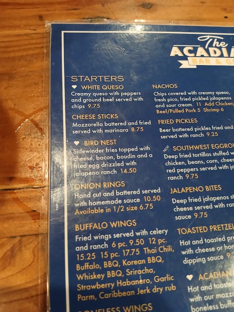 The menu at Acadiana Bar and Grill consists of an array of classic and contemporary dishes. Expect to find mouthwatering burgers like the Ragin' Cajun and BBQ Burger, each made fresh and bursting with flavor.